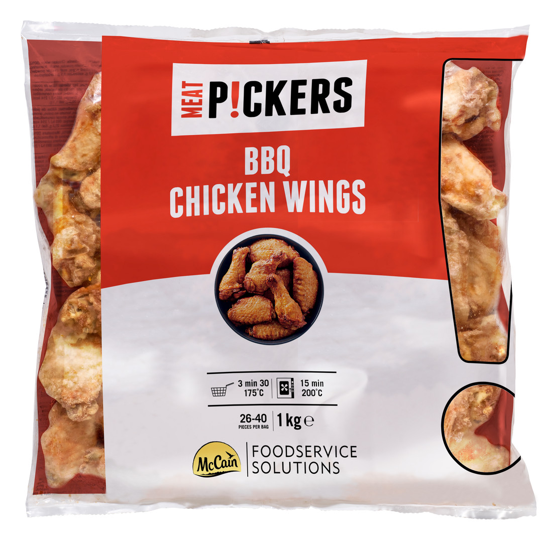 - B2B_Opis_produktu: McCain BBQ Chicken Wings to gotowe do smażenia lub pieczenia skrzydełka z kurczaka, marynowane w aromatycznym sosie BBQ. Dzięki soczystemu mięsu i intensywnemu smakowi, produkt ten idealnie wpisuje się w menu lokali gastronomicznych, które oferują dania m